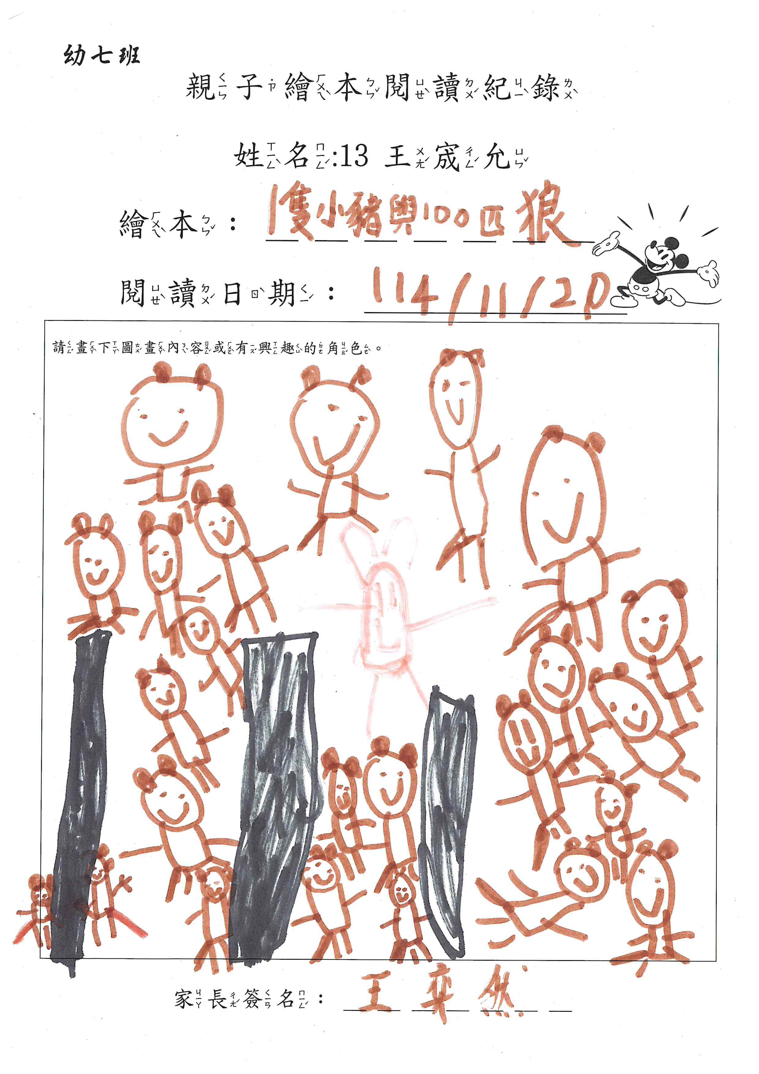 「豬與狼」的故事不勝枚舉,但是本書中的大野狼可是不一樣唷,既聰明又能運用策略,但也是因為策略運用失敗而導致小豬逃跑了。本書另一特別之處是整個情節發展,是以對話的方式呈現,有別於常見的敘事。家長進行親子共讀時,可以從封面封底中的小豬、大野狼的眼神進行討論,同時透過圖畫中的細節去觀察大野狼和小豬的一舉一動,站在小豬、大野狼的不同角度學習換位思考的能力,閱讀完,可鼓勵孩子以敘事的方式複述故事。宮西達也同系列的書還有《三隻惡狼想吃雞》、《大餓狼和小豬村》、《我才不放手!》,建議家長可與孩子一起再閱讀討論,比較作者如何詮釋書中豬、狼、恐龍及兔子等角色。