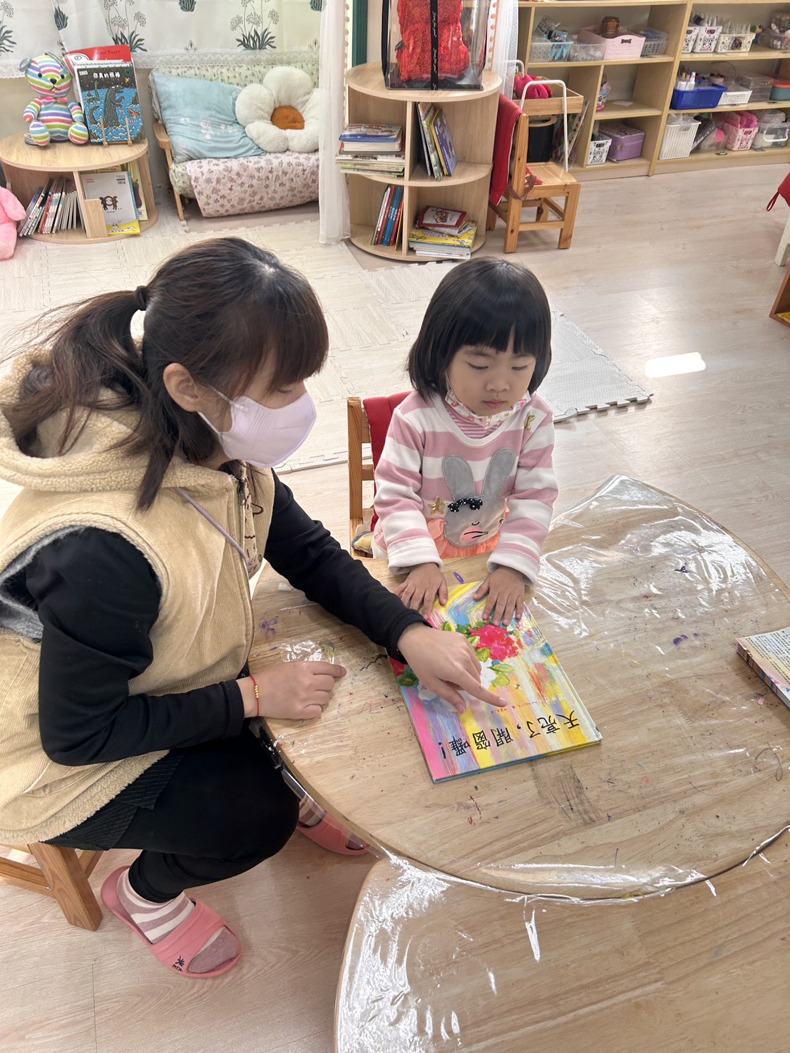 作者利用油畫的創作方式呈現不同的景色,展現畫面場景與用色的繽紛、多元,經由簡潔的文字引導細細品味圖畫的美,圖畫故意不呈現過多細節,而是給予讀者更多的想像空間,值得每一頁細細品味。共讀時,成人閱讀的語氣聲調要能配合文和圖共同營造出來的意境,也可以選擇其中一些畫面讓孩子欣賞並談談自己的感受。