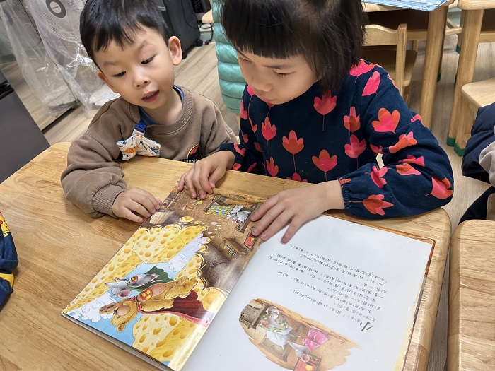 本書運用角色大小強弱的對比,插畫中角色的細部表情、陰影等,刻畫出角色的對立、勇氣、冒險、和平的關係發展。共讀時可先引導觀看封面、蝴蝶頁,留意其中的人物和場景,預測他們可能的關係,以及想做什麼事,一起討論是誰的名字叫做國王,及為什麼要叫國王。閱讀時注意小老鼠居住的環境,以及他跟大貓的行動及表情猜測他們的互動關係,故事結束後請想想小老鼠這麼做的目的是什麼。
