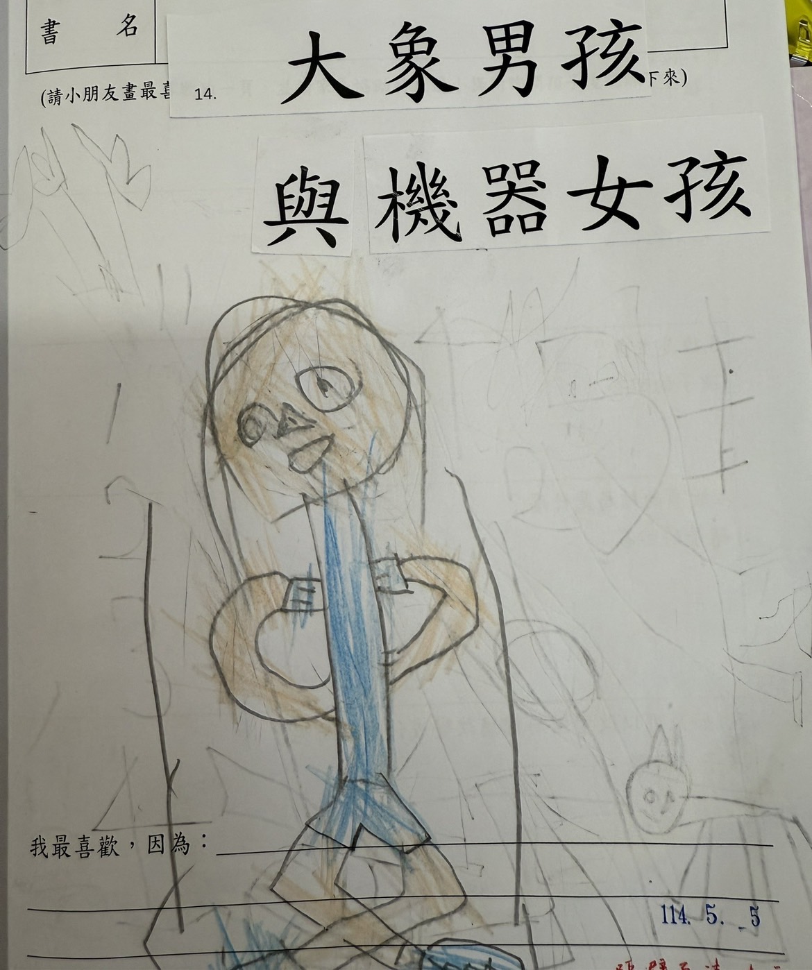 此書結合兩個故事,前後兩面皆可翻閱的設計,引導孩子可分別閱讀機器女孩:詮釋一位重度肢障無法獨自站立的女孩/珊珊;大象男孩:詮釋一位重度唇顎裂,無法吞嚥食物的男孩/祥祥。共讀時透過討論讓孩子發現兩位主角雖然天生有缺陷,但憑藉自己堅毅的力量,在困苦的環境中勇敢突破逆境,努力追求生命。透過故事引導同理心的建立,關懷周遭身體障礙的孩子,讓他們也能擁有一樣的生命價值。成人可以進一步再引導孩子與其他探討有障礙孩子的書一起閱讀如:《我的妹妹聽不見》規劃主題式的閱讀課程。