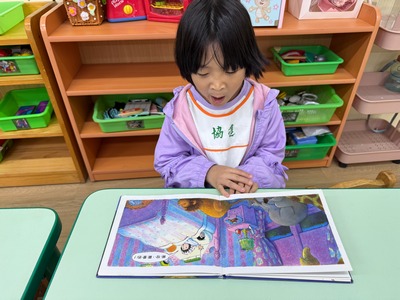 管理員下班了,調皮的猩猩拿走管理員身上的鑰匙因而開啟一個有趣的夜晚,透過圖畫中所提供的細節引導幼兒深入觀察,如:鑰匙與鐵籠如何打開、動物排隊順序與開啟鐵籠的順序,培養幼兒讀圖的能力與細節的觀察。