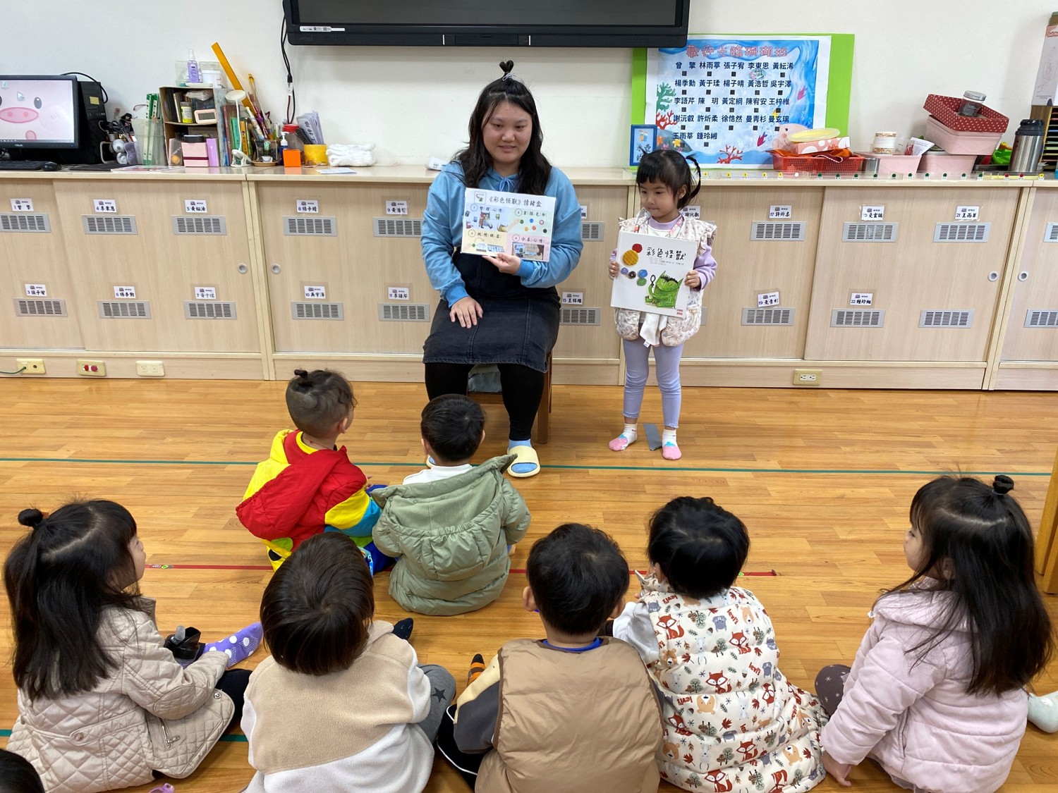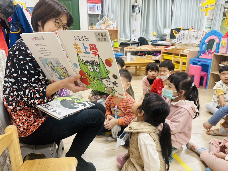 引導孩子留意彩色怪獸第一天上學參與各種生活作息身上色彩的變化,並試圖請孩子說說文本中彩色怪獸的表情、情緒、身上色彩以及文字之間的關係。