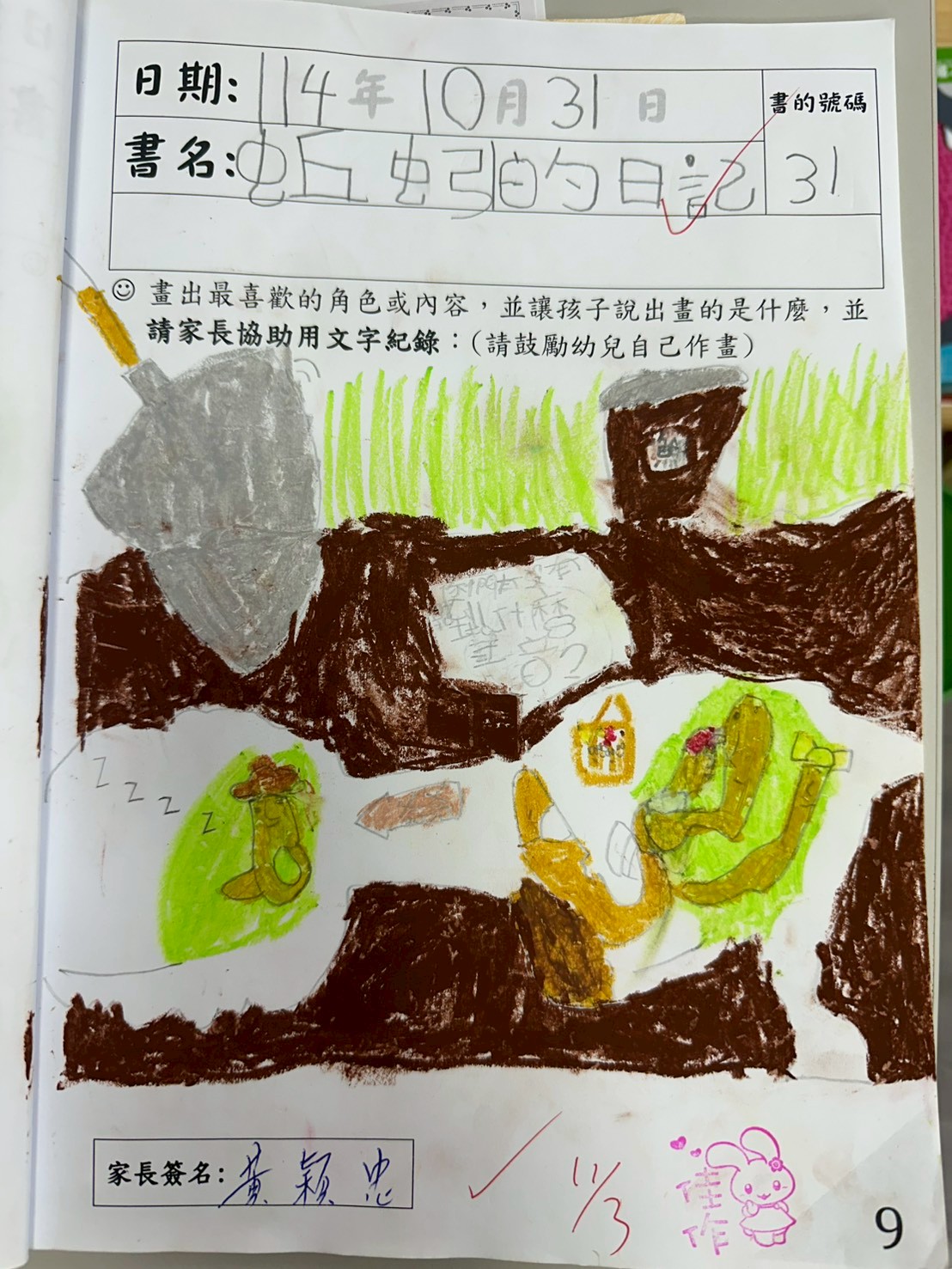 本書將蚯蚓塑造成可愛、幽默的角色,其圖畫幽默趣味。利用主角本身就是蚯蚓小孩的身份做與人類相似的生活,更從日記中加入蚯蚓本身的生活特性,讓我們了解到人類的活動對蚯蚓的危害及蚯蚓本身對地球的貢獻。引導孩子思考以同理心對待生物,學習生命教育。