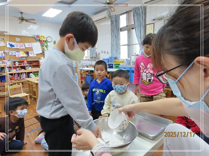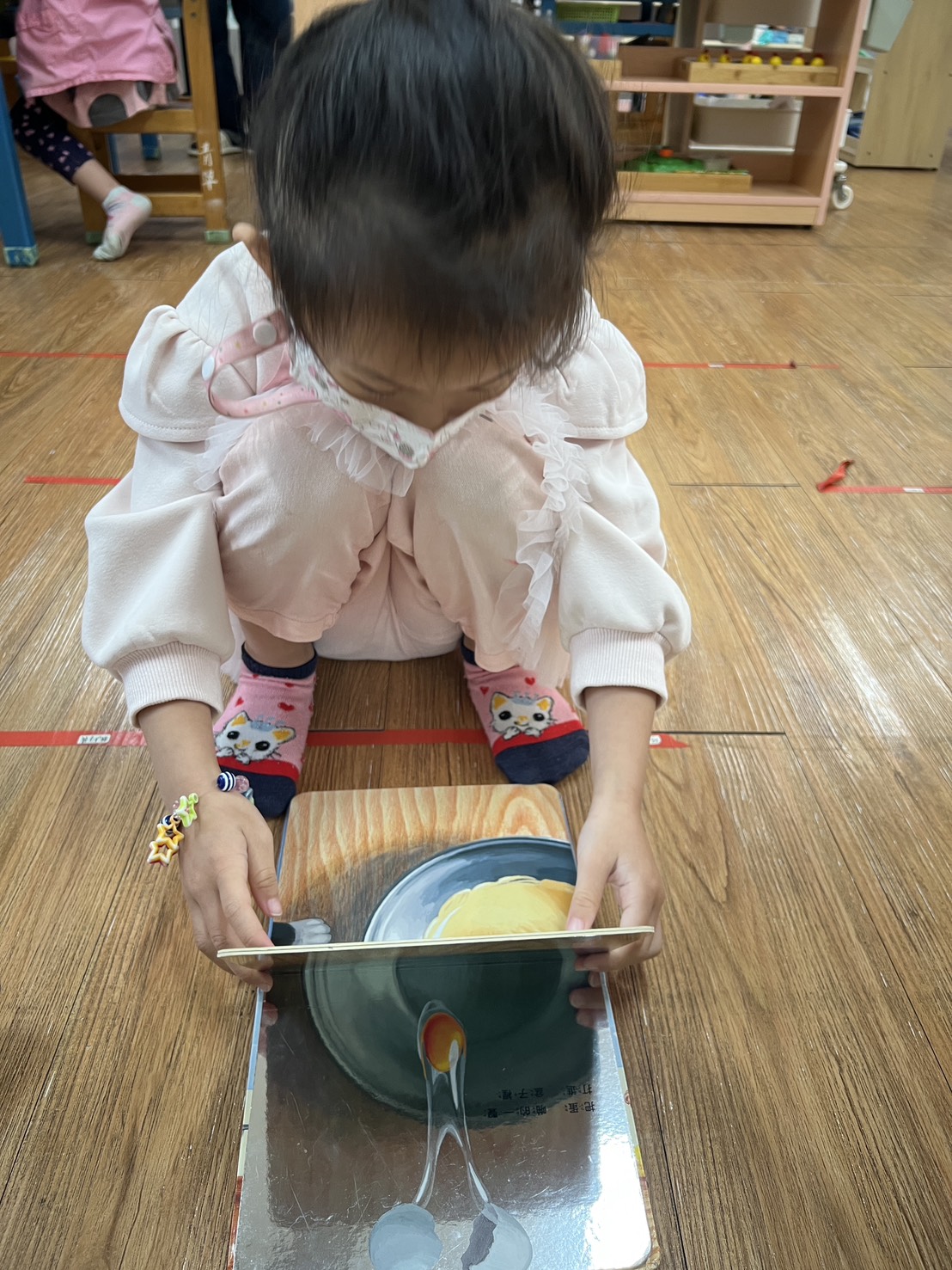 透過做點心引發幼兒的興趣,逐步引導出材料使用的量與比例、順序等數學概念,結合有趣的鏡面對稱,讓繪本在不同角度的觀察上有不一樣的感受,讓孩子可以自由探索鏡面在不同角度所造成視覺上的變化。