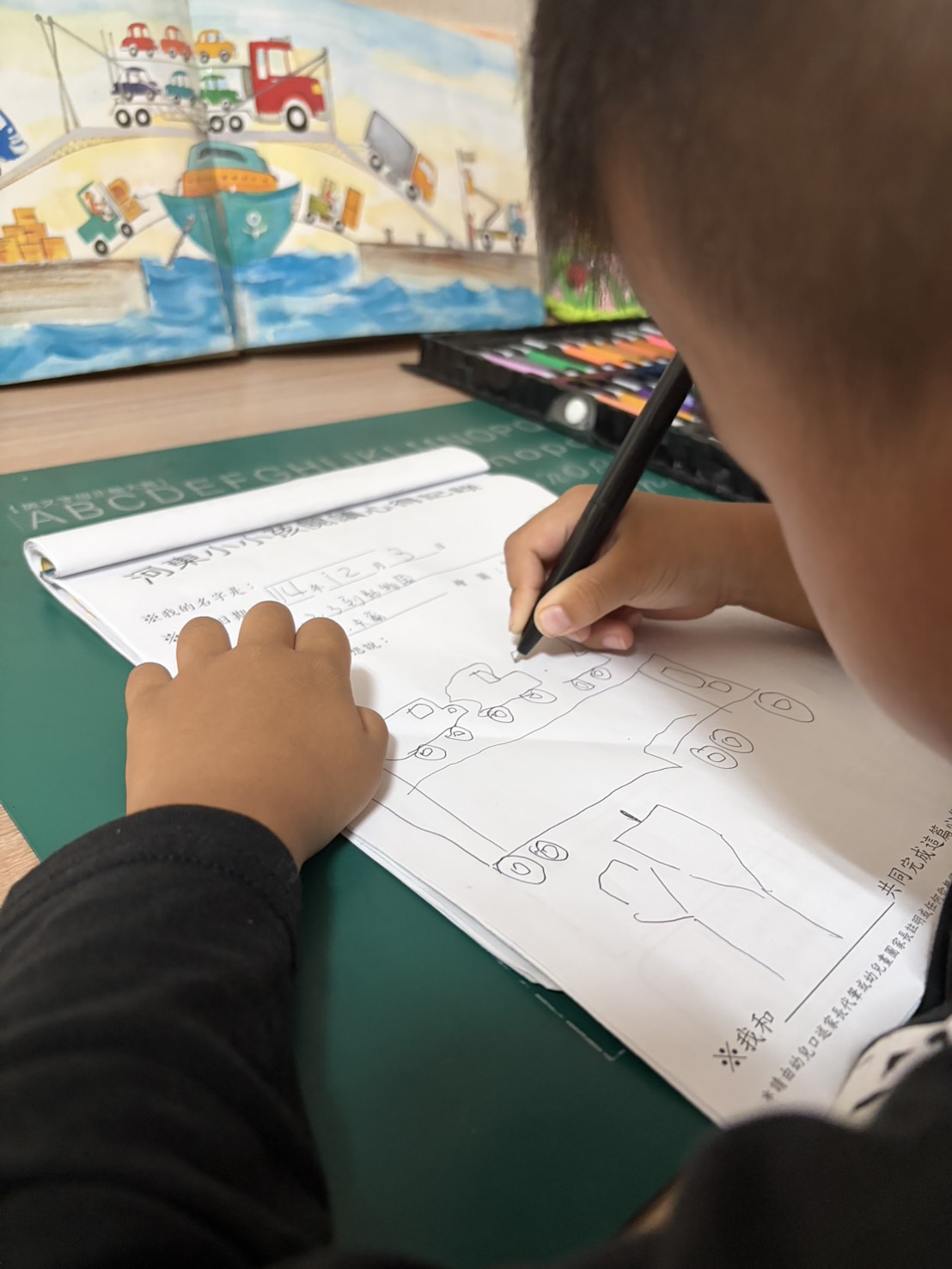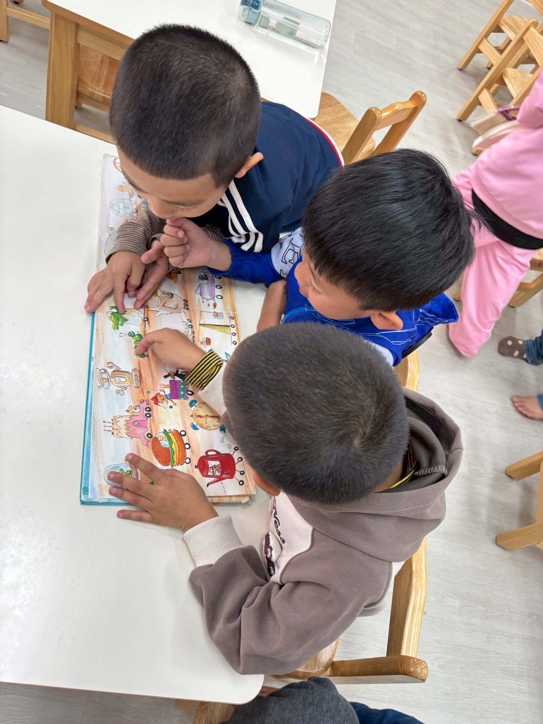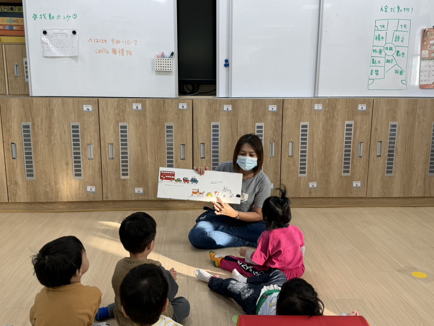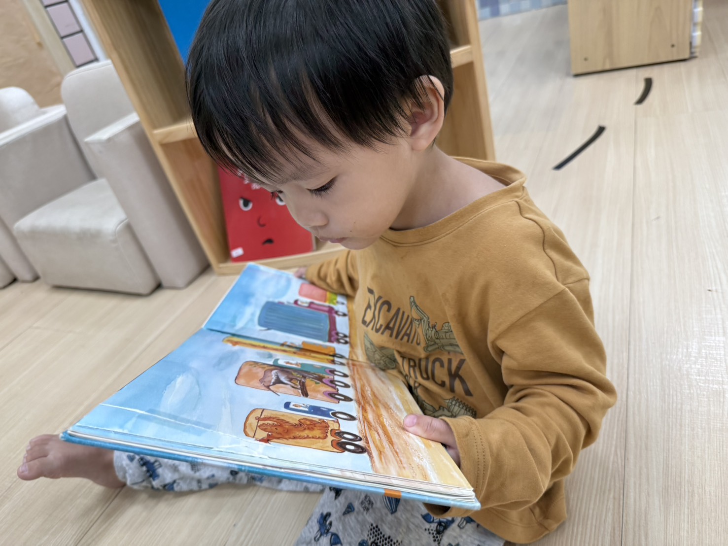 透過父子共乘一部車,因為塞車而展開一連串的車種介紹,剛開始舉例以顏色、形狀分類,接著是各種功能的車子,設計雙跨頁展開圖與主角想像的各種車,增加趣味及想像空間,共讀時可與孩子一起為特殊造型的車命名,記得不要略過書名頁。