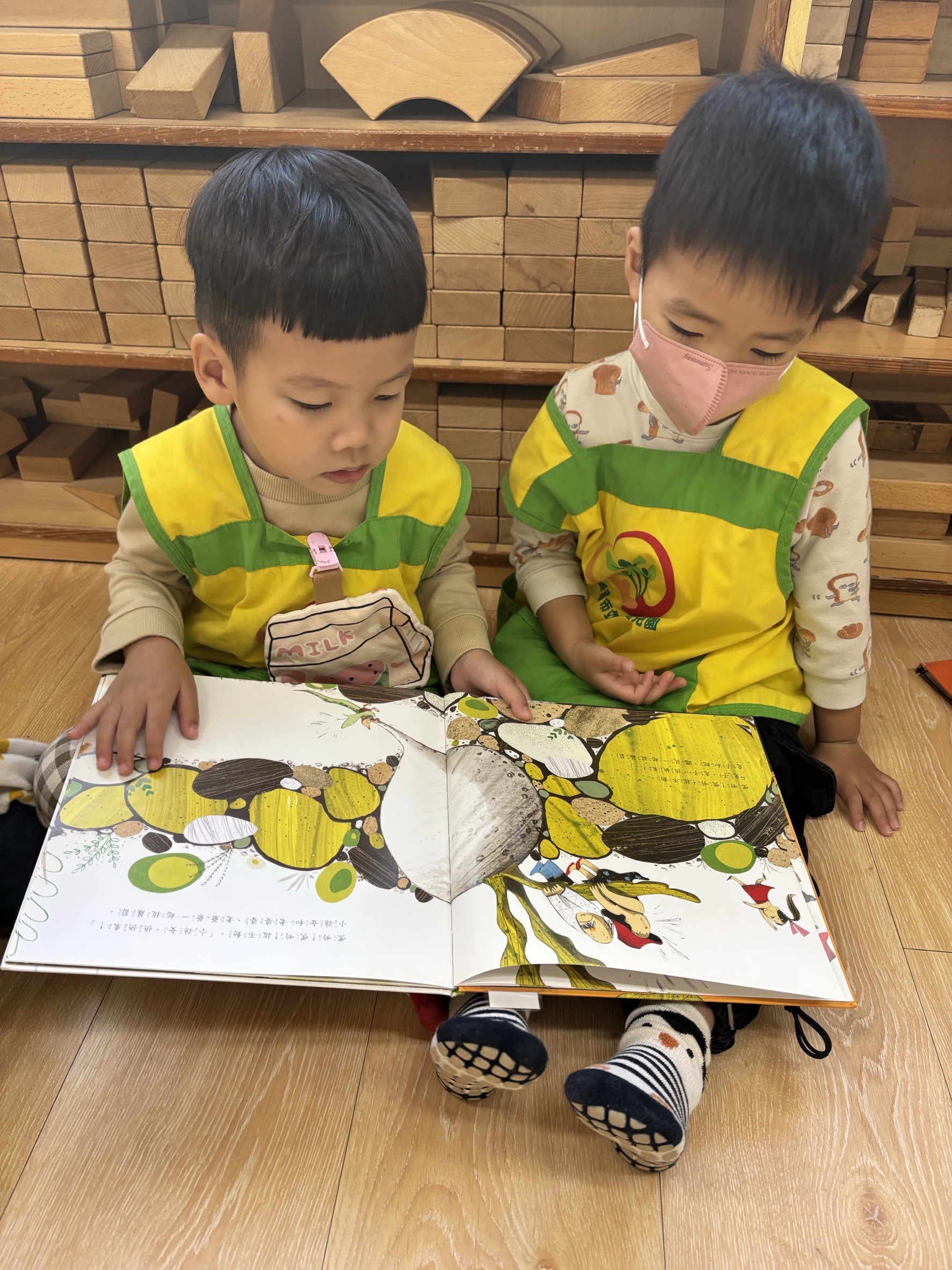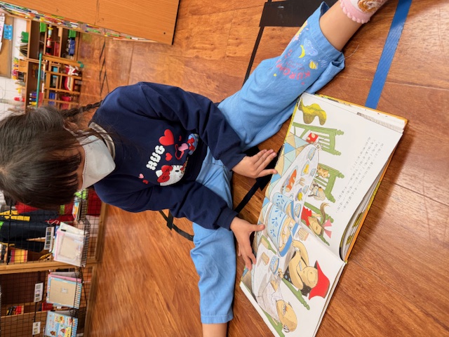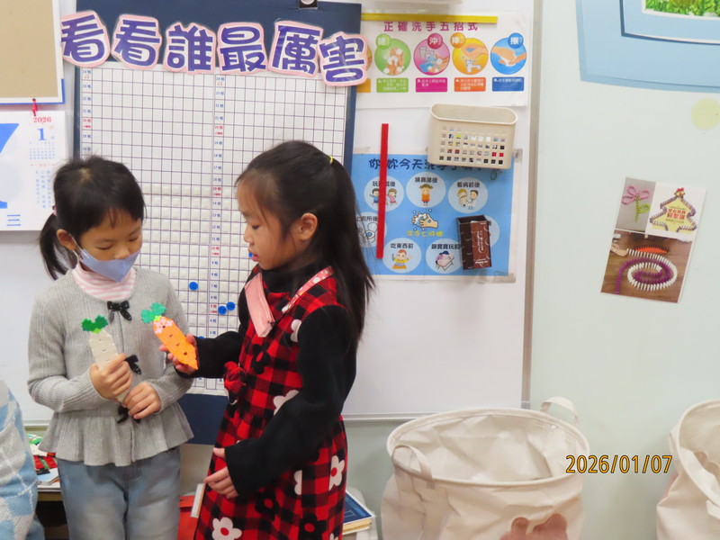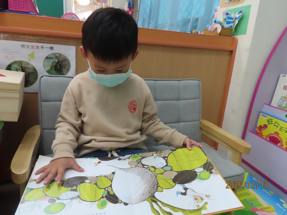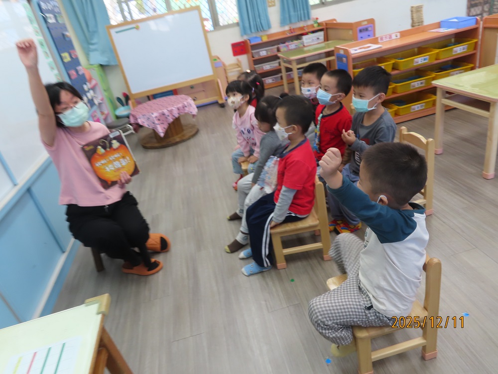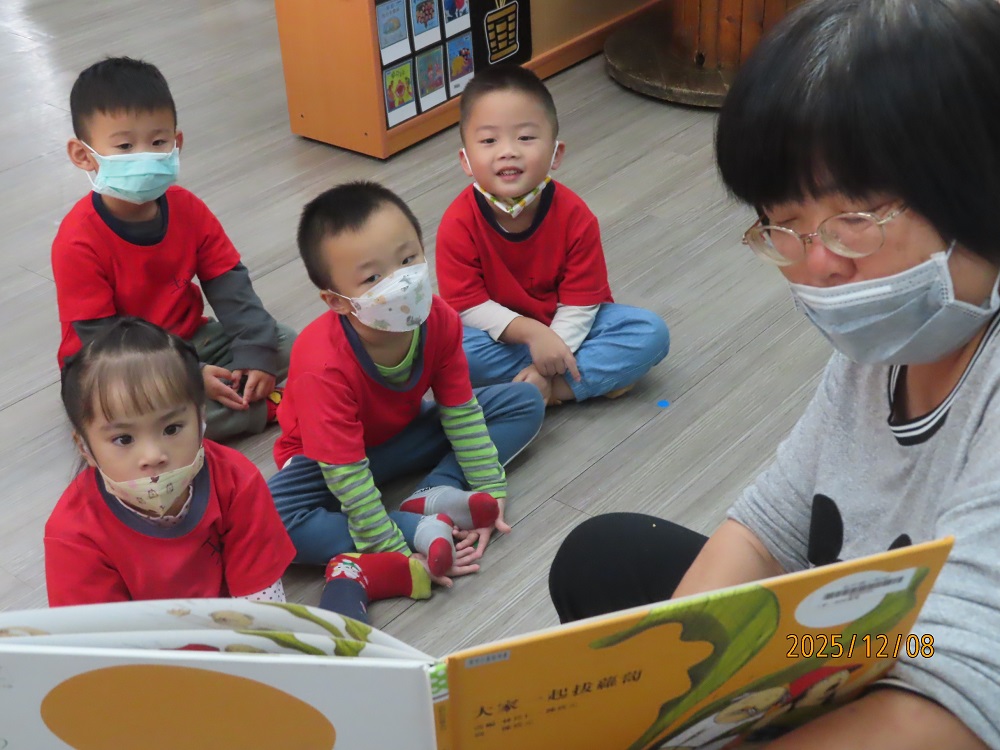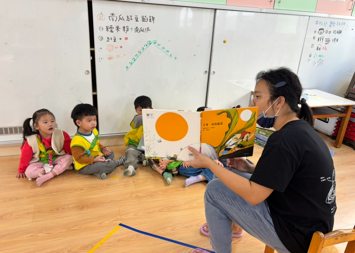 家長可與幼兒輪流唸出第一及第二頁的重複語句,並引導幼兒觀察畫面的角色,「蘿蔔長出來了……,○○○看到嚇一跳!」透過故事中另一個重頭戲的重複語句-「嘿喲!嘿喲!拔不動。○○○、○○○快快來」,引導幼兒觀察下一個拔蘿蔔的角色順序是誰,幼兒找出一個個堆疊角色後,可預測拔蘿蔔的故事發展並唸出拔蘿蔔時有趣的重複語句。
