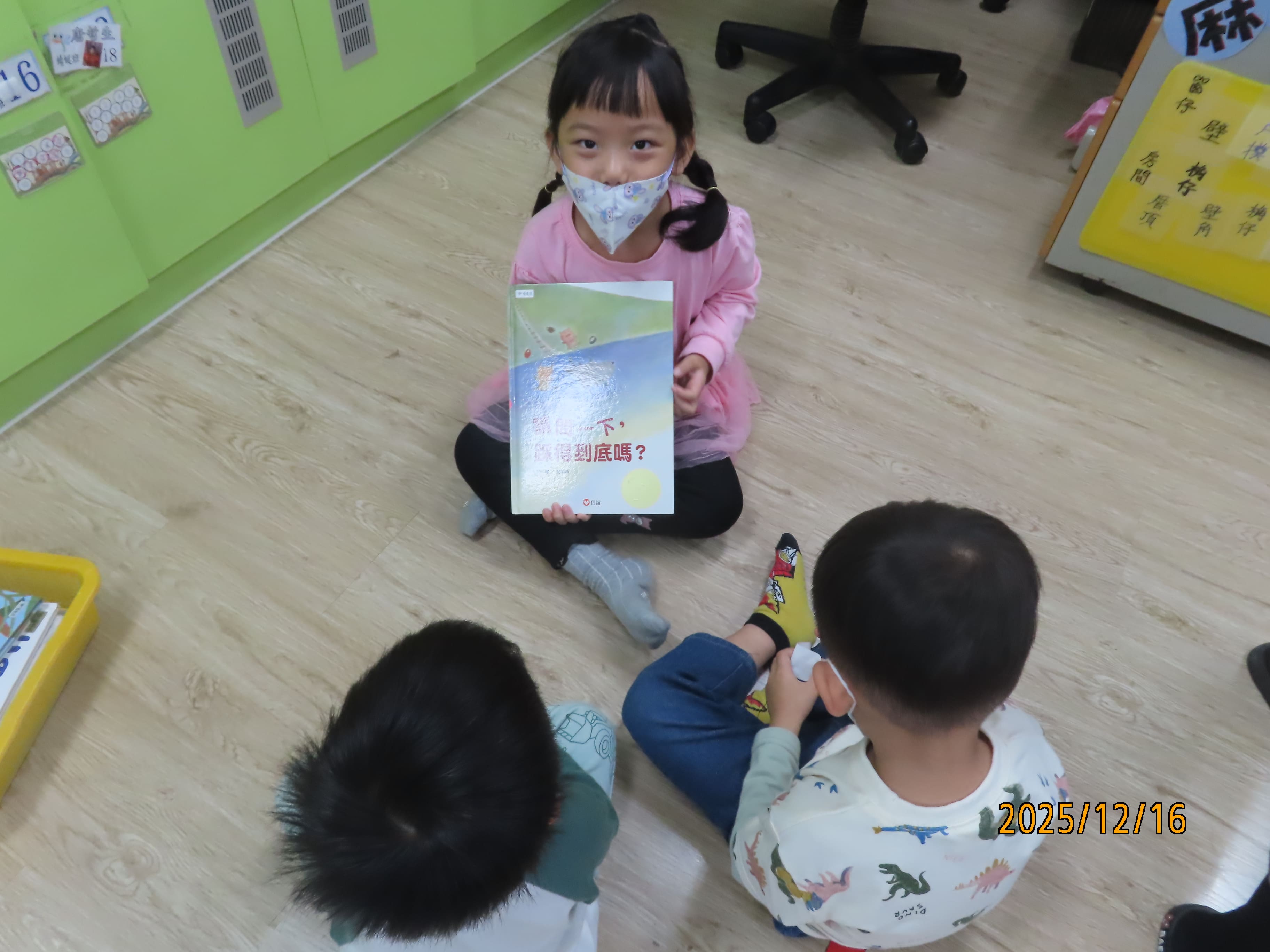 故事以重複句「請問一下,踩得到底嗎?」,被詢問的動物總是以自身的經驗回答泳池的深度,共讀時可以引導孩子跟著預測到底踩不踩得到底呢?幽默的體會表達溝通時個人觀點的差異性,正是故事吸引人的樂趣!