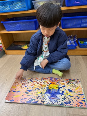 作者利用兩隻主角蜥蜴代表一位很會畫畫及一位想要學畫畫的角色,成人在帶領幼兒閱讀時可以分次引導,除了閱讀故事線,理解其中的探索與幽默元素,也可適時加入作者創作方式的說明,讓孩子認識不同的創作技法(油畫、水彩、粉蠟筆、線雕、噴畫、滴流畫、點描畫)等等,另外,可從繪本中的分鏡漫畫形式文字模式(不同顏色與字體)解讀作者在繪本中創作方式與目的,引發孩子進行藝術創作的補充和對話。