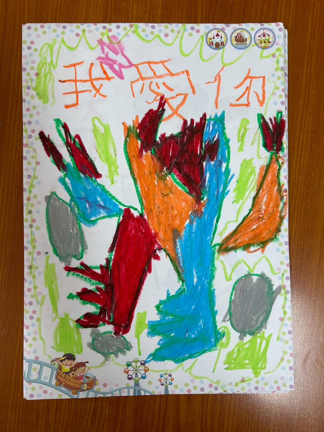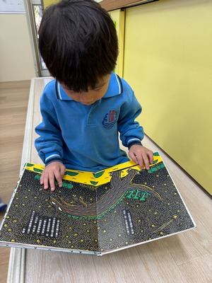 「我愛你」是什麼意思呢?能用具體的形象展現出來嗎?繪本中運用霸王龍的形象營造,巧妙帶出父母(長輩)對於子女無私的愛與付出,進而與孩子討論「我愛你」在繪本中所要表達的含意不只是霸王龍對平頭龍的照顧,而是自己生活周遭所遇見的人對於自己照顧的愛,循序導引孩子思考如何將「愛」表達出來。