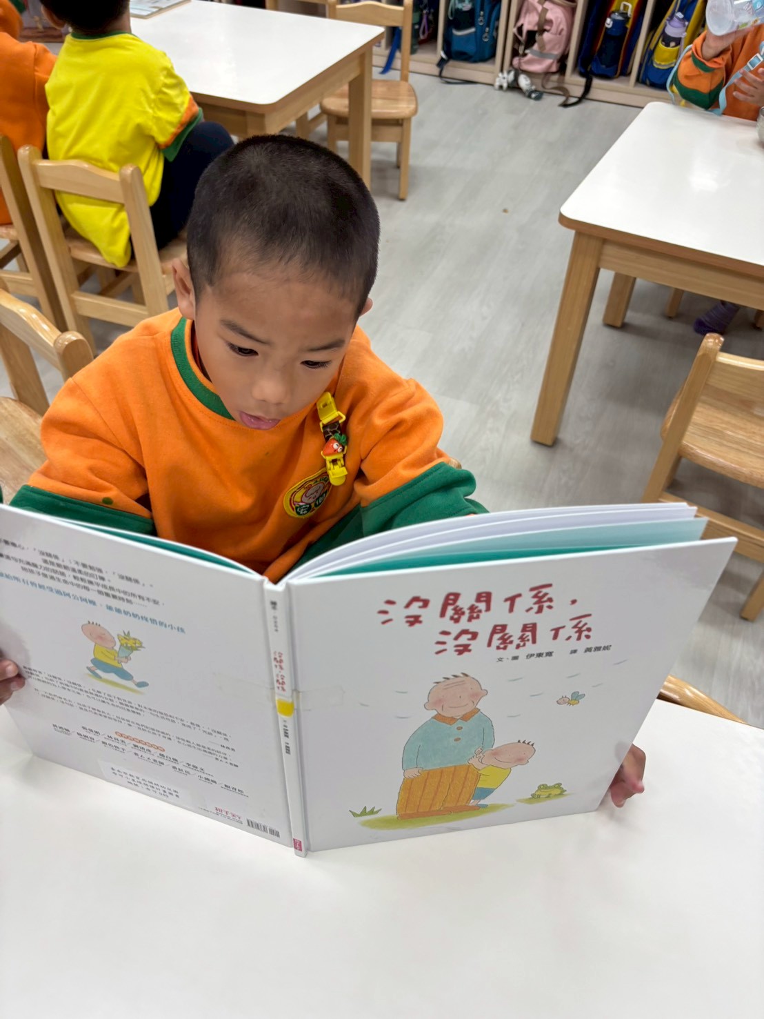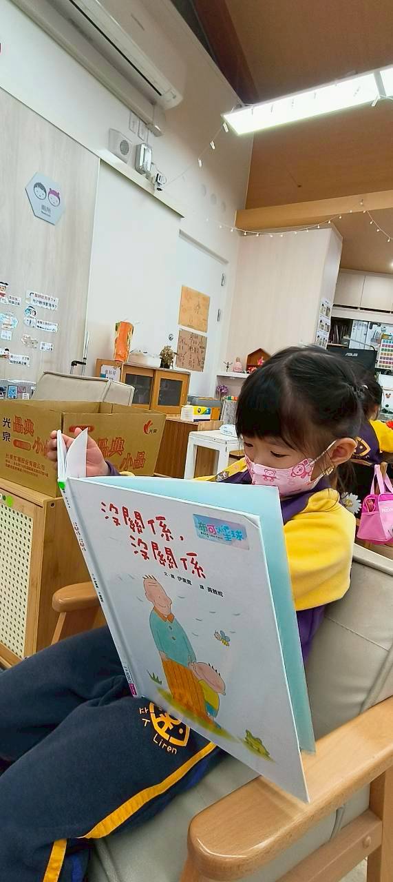 作者以清新、簡柔的方式描述時間軸中祖孫間的互動脈絡,共讀時可引導孩子觀察主角如何從依賴爺爺的安慰陪伴到主動付出關懷的過程,思考相同的「沒關係,沒關係」在不同的時候代表著不同的涵義。