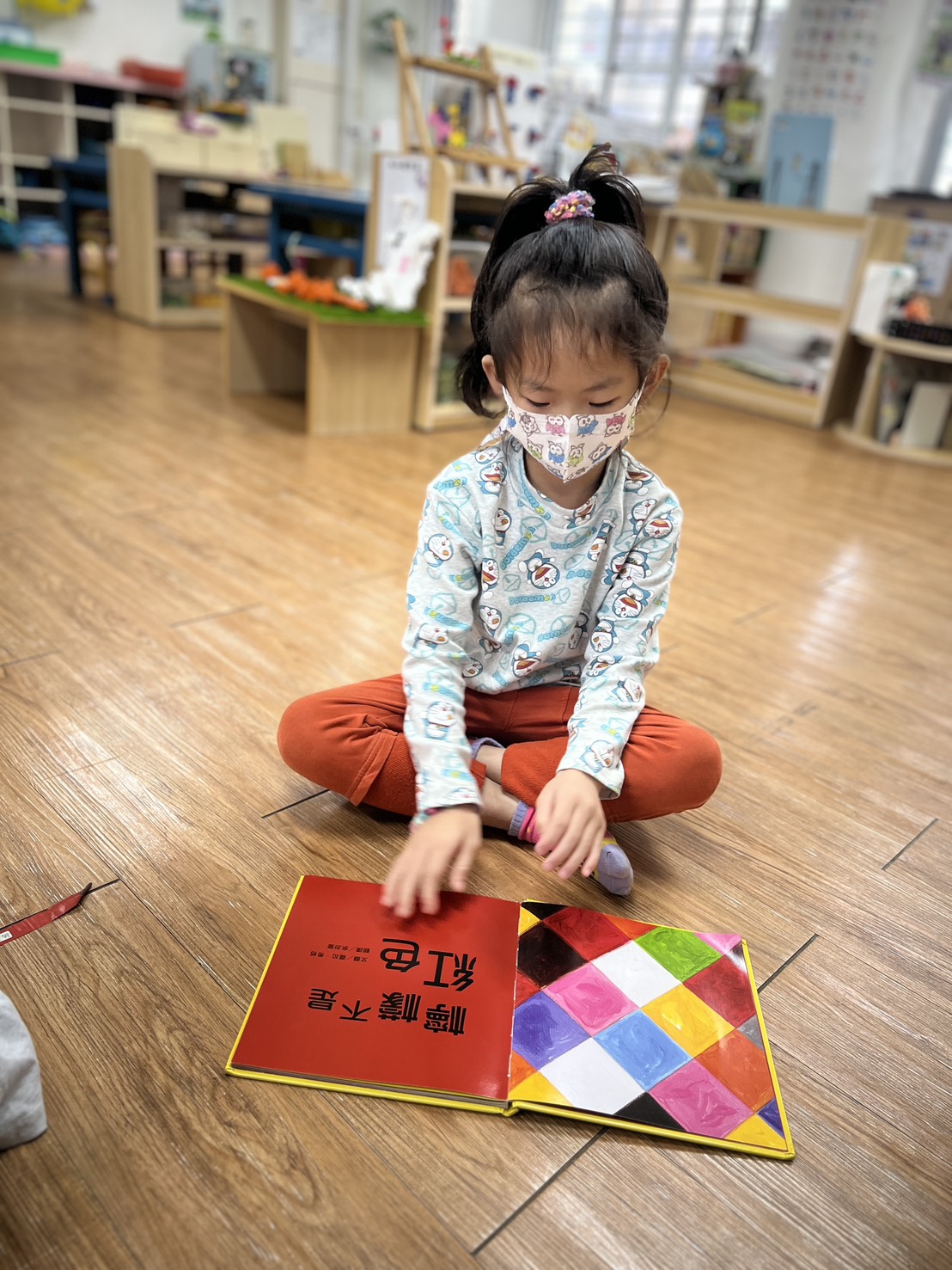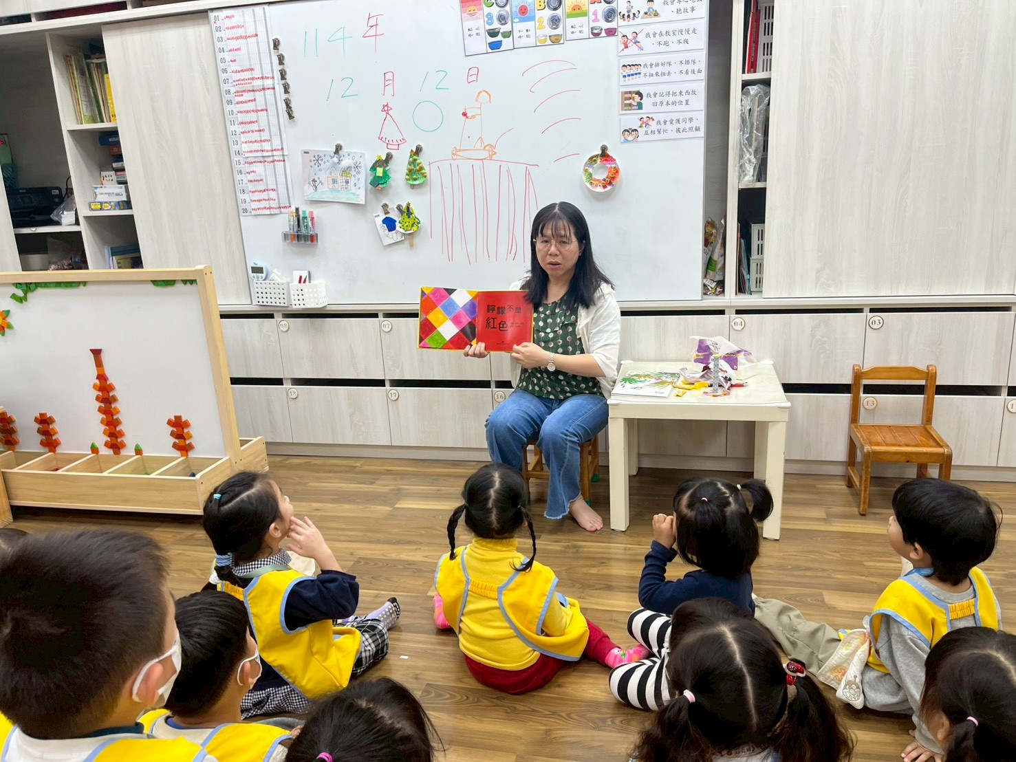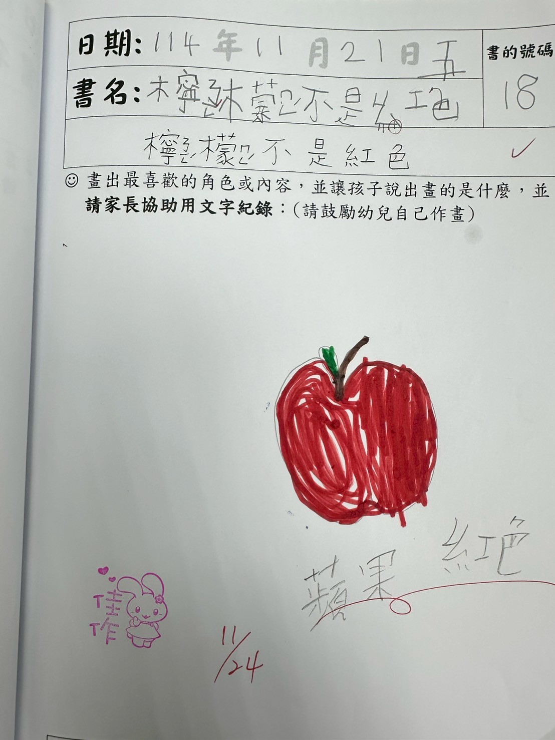 本書的設計以顏色和書頁鏤空的設計,讓孩子以是非題的概念回應書本所設計的物品,閱讀時可讓孩子依其經驗猜測與顏色相配的實物。前後蝴蝶頁的設計上都加入了紅色的元素,除了可以探討顏色所代表的相關物品,也可以思考顏色所帶來的想像,並且欣賞油畫所帶來的愉悅感受。