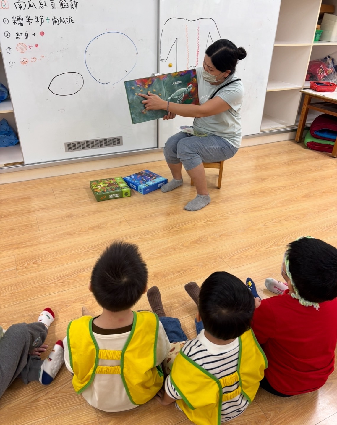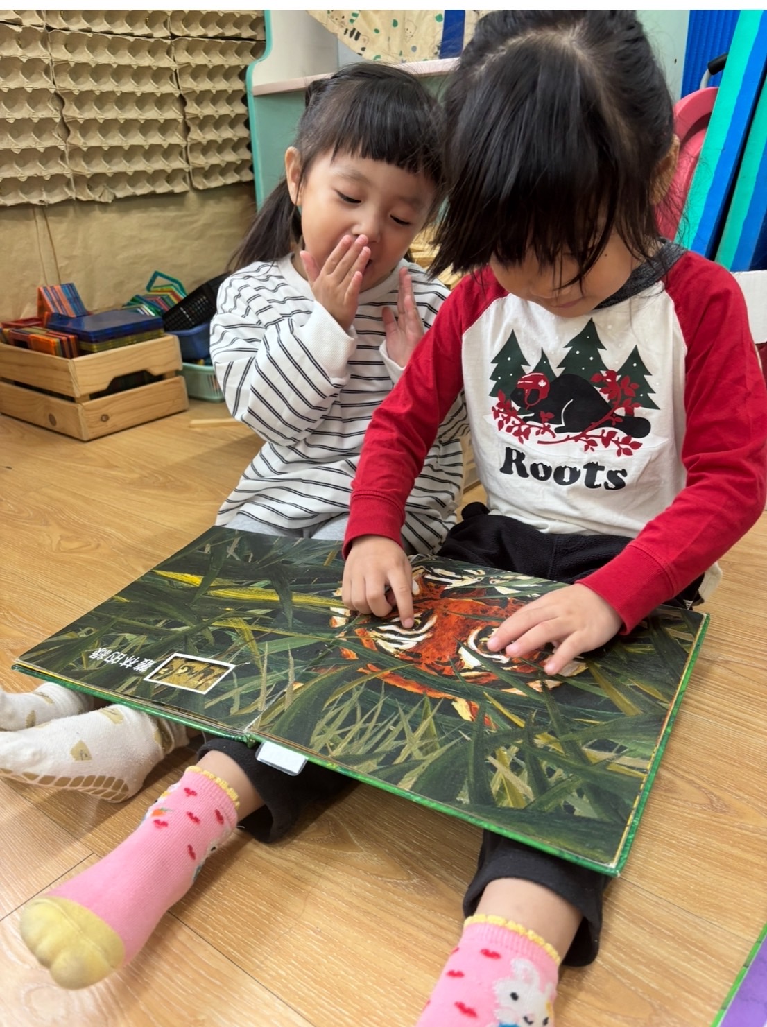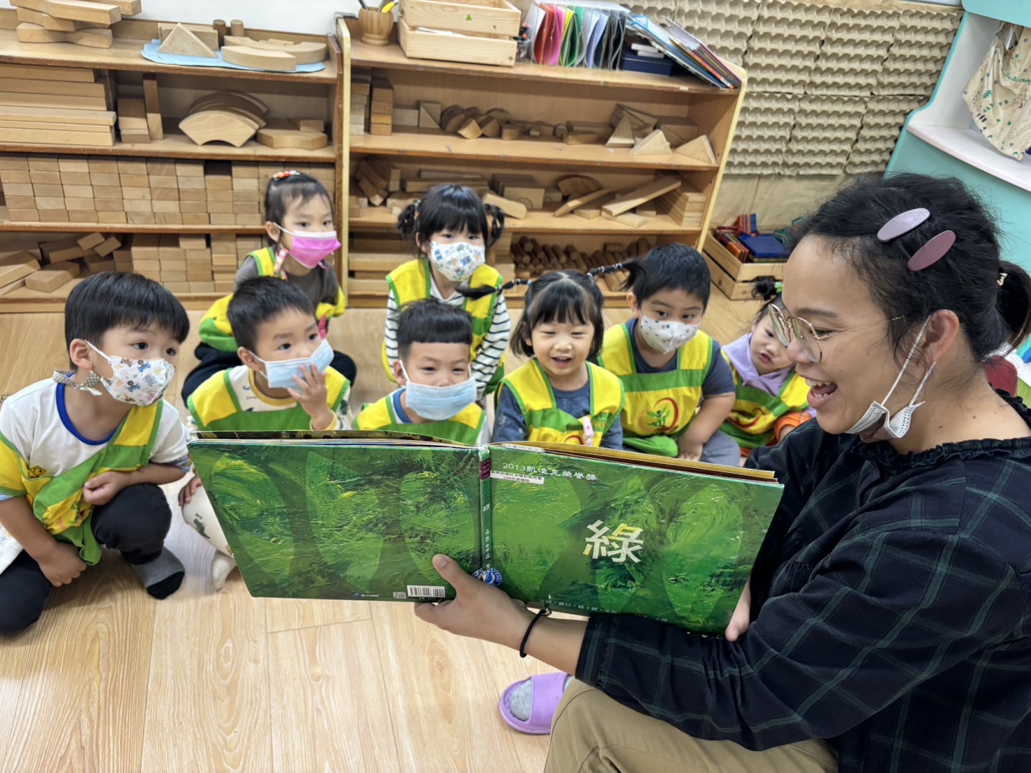 這是一本探究生活中色彩的圖畫書,作者用壓克力原料和布的紋路特色透過跨頁圖畫呈現各種不同的「綠」。內文裡的文字、色彩、相反詞等,和洞的形狀、大小、數量…也都是作者所安排的有趣的元素,尤其這些洞更巧妙地銜接起前、後頁之間的關聯,也是可以在閱讀時提醒孩子去關注的焦點。說故事前不要忘了提醒孩子多關注書中各種不同的綠和圖畫風格,說說對各頁圖畫和顏色的感受,來拓展孩子的美感視野。