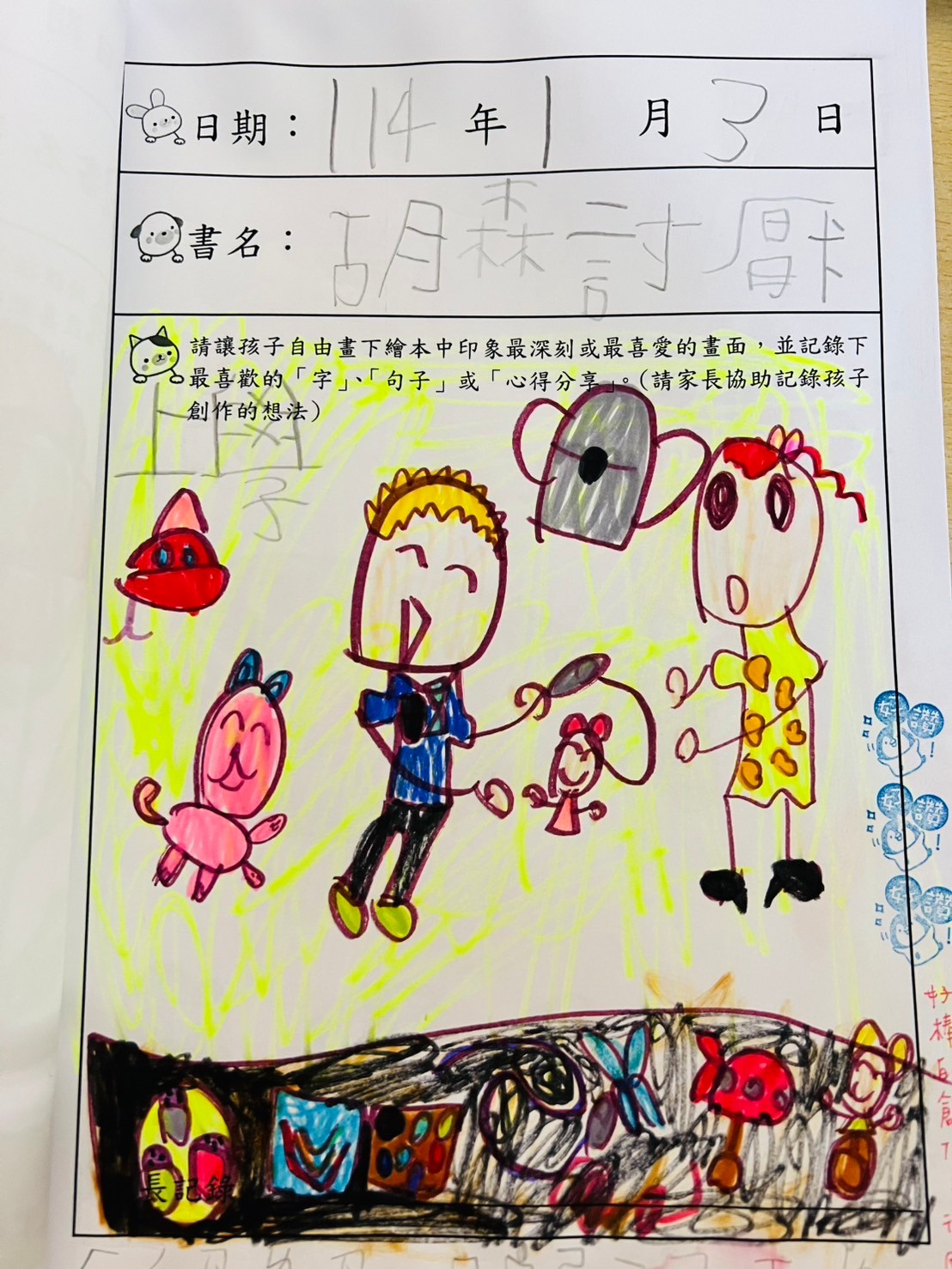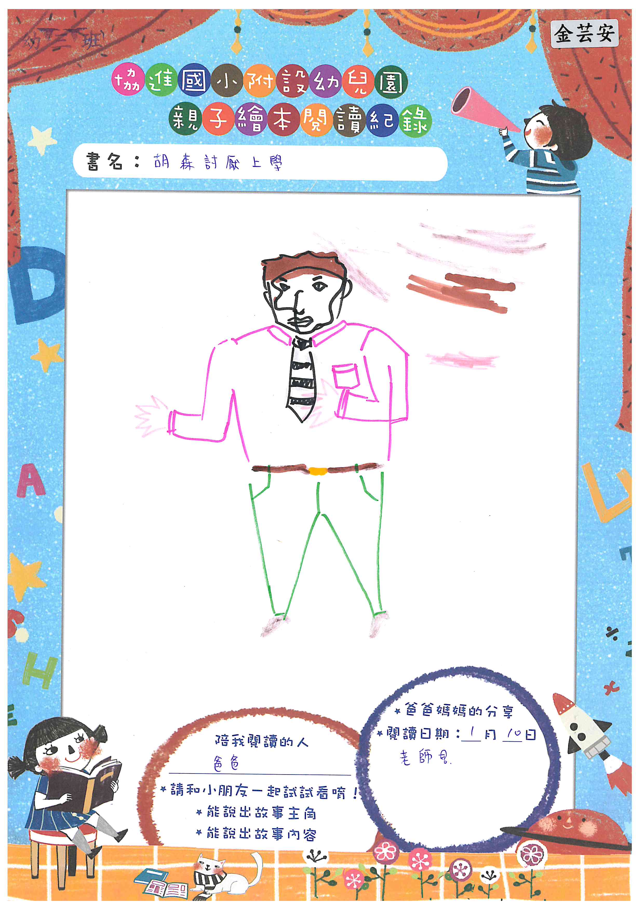 每個孩子都需要上學,也可能面臨到與主角胡森一樣討厭上學的情況,但討厭上學的原因有很多,如何找出討厭的原因和覺察情緒後,面對它並且克服它,這是需要成人的支持與協助。從成人與孩子的共讀過程,幫助彼此去了解學習有很多種方法,當遇到每個人的優劣勢能力不同,如何去欣賞自己與別人的長處,接納與尊重彼此的不足之處,可從故事中學習如何與他人正向社交的互動概念,以及肯定自己的自我概念。